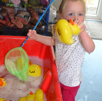 As part of our annual Life Skills programme, the Kindergarten have been learning Makaton signs for the songs 'Five Little Ducks' and 'There's a worm at the bottom of the garden'. The children had a 'splashingly' good time as they played 'Hook-a-Duck' and 'Find the Hidden Ducks'. This promoted number recognition, understanding the value of numbers, counting, turn taking, mathematics, floating & sinking, science, language skills and communication. Similarly we have been enjoying stories and in particular the wise man who built his house upon a rock. The children made their own house structures using Lego and placed them on rocks and some on sand. After using a watering can for the 'floods', we discovered the foolish man really did build his house on the sand as it was washed away.