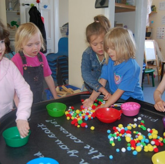 We love singing about colours and looking at different shapes. The little Ladybirds and Butterflies have been exploring the different colours, shapes, textures and sizes of objects in the sensory tray. Each tray has been set up with a particular colour in mind. The tactile, sensory rich trays offer the children the opportunity to explore using their senses. This in turn supports their creativity, curiosity, fine motor skills, communication and fosters social interaction with their peers.
