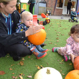 Scooping out pumpkins is so much fun. Exploring the texture, the seeds, the colour and stringy texture of the flesh. Well done to Ladybirds and Butterflies group for winning our Facebook vote for the most decorated pumpkin! We think they all look fabulous and they can still be seen on the porch doorstep.