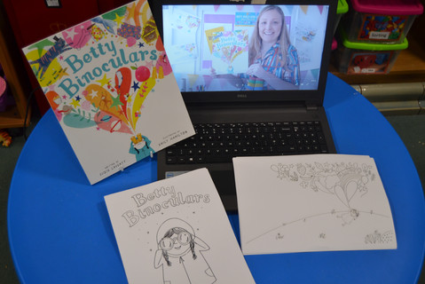 Local author, friend of St. Michael's and past colleague Suzie Laverty read her fabulous book 'Betty Binoculars' to the Dragonfly & Kindergarten children for World Book Day. Her incredible book captures the children's imagination as they journey with Betty guessing what they are going to see through the binoculars on her adventure! We even had colouring sheets illustrated by Emily Hamilton.