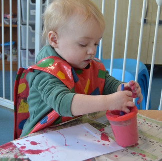 We have the most fabulous Tuff Tray set up to explore our 'Winter' theme. The children enjoy the colours and mixing, pouring, stirring, scooping and the feel of the rice.